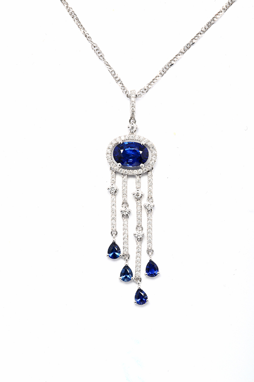 2.03克拉蓝宝石吊坠项链